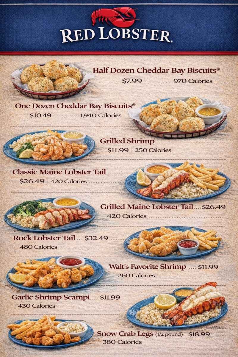 Red Lobster’s Cheddar Bay Biscuits are one of the brand’s most famous items, known for their soft, flaky texture, sharp cheddar cheese, and garlic-herb butter topping. They are served unlimited and free with every dine-in entrée, making them a big part of the Red Lobster experience.
